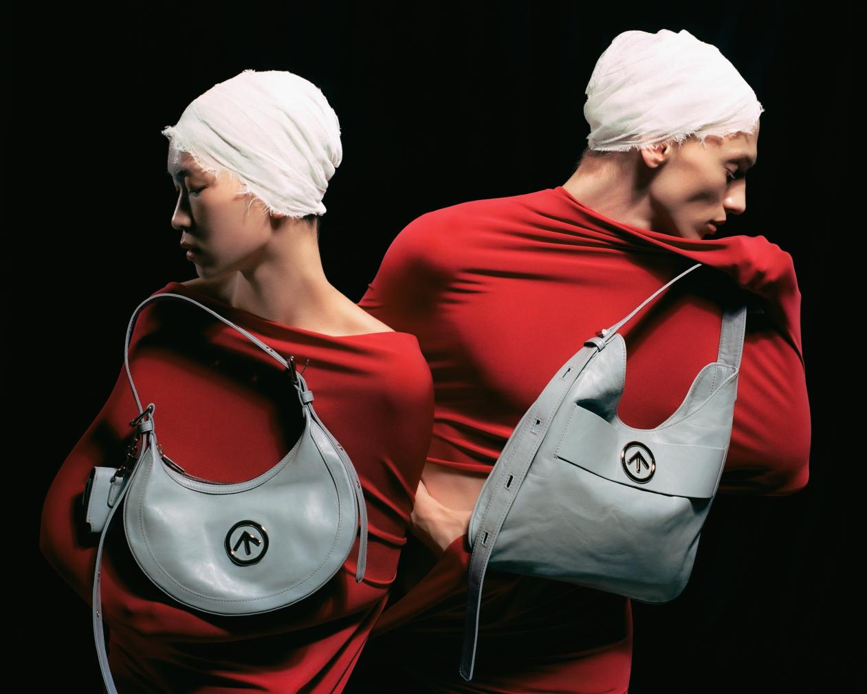 在包型的選擇上,GROTTO個樂以實用性較強的單肩包袋為主——腋下包的新月包型以及垂感較強的托特包型。新月包的圓形弧度是溫柔如月的象征,而霧藍的朦朧則表達了春夏月色的清澈與流動感。在曲線的線條中,流淌自由的夢。