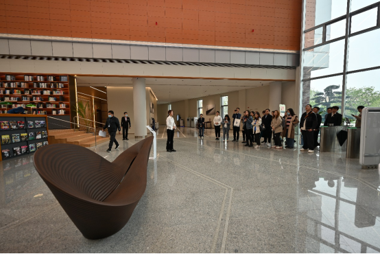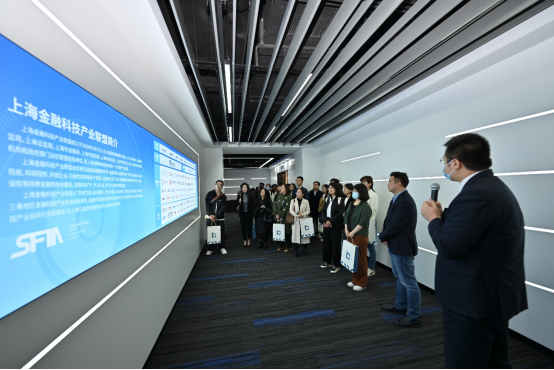活動嘉賓和青年代表參觀調研國際金融科技創新中心項目。