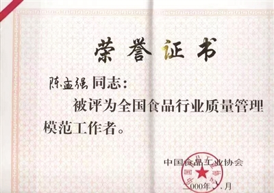 1987年,陳孟強參與起草了《保國際金牌奪國際金獎》的專題報告,并在全國輕工行業工作會議上進行了匯報。