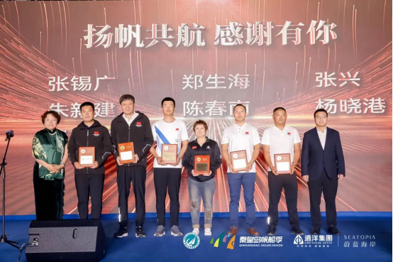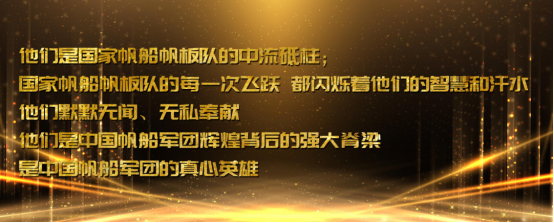 隨后,晚會致謝了為支持國家帆船帆板隊備戰奧運做出突出貢獻的個人——張錫廣、朱新建、楊毅光、鄭生海、陳春南、張興、楊曉港。國家帆船帆板隊的每一次飛躍都閃爍著他們的智慧和汗水,他們默默無聞、無私奉獻,是中國帆船軍團輝煌背后的強大脊梁。
