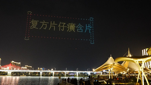2月15日20時,一場由500臺無人機組成的天幕秀在漳州九龍江畔龍江水幕廣場上空精彩上演,為廣大市民帶來一場流光溢彩的視覺盛宴。此次無人機表演秀以“你好 漳州”為主題,與現場數萬名市民共度元宵佳節。