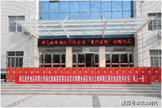 捐贈儀式上,商丘通寶食品有限公司向全縣在崗公辦教師捐贈13000份、價值78萬元的慰問品。參加捐贈儀式的領導為其頒發了捐贈證書、慈善公益模范證書、慈善公益先進企業牌匾和錦旗。