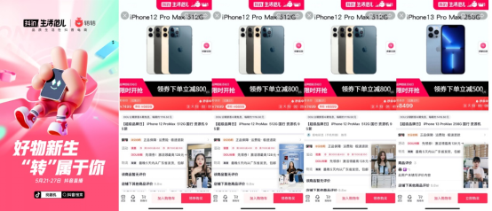 5月27日抖音站內轉轉官方直播渠道與線下門店同步直播狂歡繼續,20款網紅產品低至1折驚喜福利,更有超高性價比產品上線。