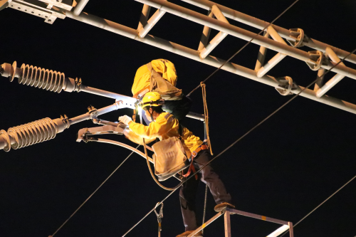 2022年9月22日凌晨0點33分,一聲“開工作業”嘹亮的口號劃破了海口寂靜的夜空,作業人員根據分工有條不絮的開始忙碌起來。1點35分隨著吊車吊臂平穩落下,一組長23.03米的橫梁穩穩的落在鋼柱上,作業人員迅速對位、連接、緊固、落臂……熟練的操作一氣呵成,順利精準完成了海南環島高鐵首次硬橫梁更換作業。