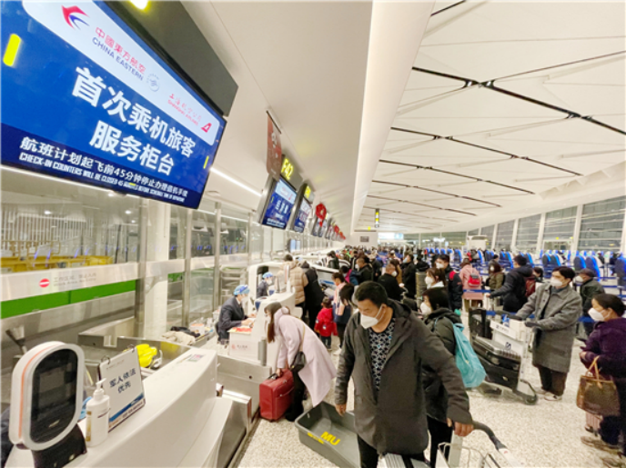 春運首日的上海虹橋、浦東機場,旅客客流增大