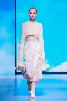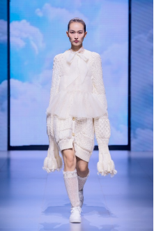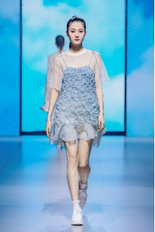 在“童年”主題秀演中,法國(guó)設(shè)計(jì)師聯(lián)袂浙江懿紗紡織科技有限公司、紹興柯橋豐旺紡織品有限公司,圍繞兒童的藝術(shù)、回到學(xué)校、童年的回憶三個(gè)子主題,共同演繹了童年的懷舊故事。設(shè)計(jì)師以精細(xì)的絎縫、印染、明線縫紉及自然著色的效果制作服裝和圖案,在工藝上采用了法國(guó)特有的編織技術(shù),并結(jié)合WALTZ系列花紗、三醋酸、錦滌歐根紗、六角硬網(wǎng)等面料輕薄有型、色彩飽滿(mǎn)的特色,最大程度實(shí)現(xiàn)了紡織工藝的價(jià)值化。特別是在傳統(tǒng)手工藝非遺、生態(tài)環(huán)保材料等系列元素的加持下,為整場(chǎng)秀演增添了可持續(xù)時(shí)尚的價(jià)值。