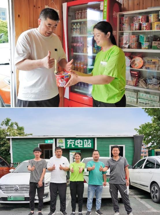 “跟往常一樣,一碗泡面一個鹵蛋。”新能源車車主楊先生每次來到卓越綠站補電,迎接他的,總是張站長的微笑。