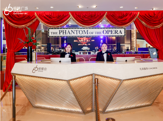 活動儀式現場,恒隆地產高級董事彭兆輝先生、副董事胡惠雅女士亦登臺祝酒,與上海文廣演藝集團總裁馬晨騁先生及青年演員畢雯珺一起,與現場來賓共慶港匯恒隆與音樂劇《劇院魅影》中文版特別聯動活動的揭幕。