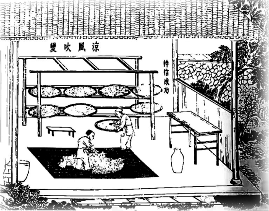 釀酒必須要用酒曲作為酒引子,沒有酒曲,即便有好米好黍也釀不出酒。為了釀出好的酒曲,宋應(yīng)星記錄道:“用楮葉包扎,懸風(fēng)處,或用稻秸罨黃,經(jīng)四十九日取用。”且“生黃未足,視候不勤,盥拭不潔,則疵藥數(shù)丸動輒敗人石米。”意思是制曲之人需有耐心且細(xì)心,要時(shí)常查看酒曲的發(fā)酵情況,營造適宜酒曲發(fā)酵的環(huán)境。