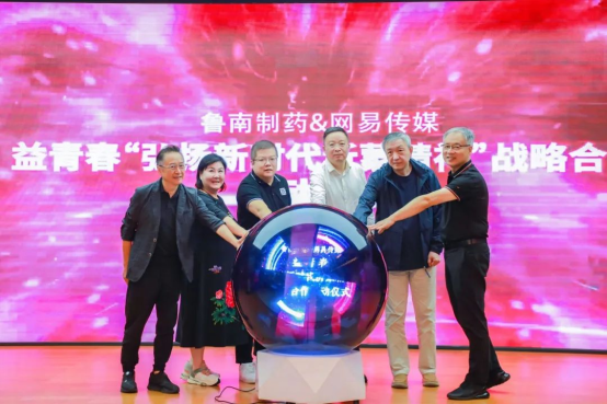 現場,魯南制藥與網易傳媒關于益青春“弘揚新時代沂蒙精神”達成戰略合作,張貴民董事長、穆虹董事長、于洋副總經理、金主席、莫主席、周偉先生一同上臺完成啟動,相信有了網易傳媒的助力,魯南制藥一定能將沂蒙精神的火種持續在青年人及廣泛大眾心中延續。
