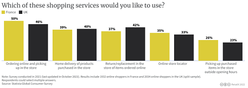法國電商市場成熟,形態發展多樣,電商平臺和本地零售企業打得火熱,后者提供的“線上下單,線下自提”服務贏得了許多法國消費者的青睞。