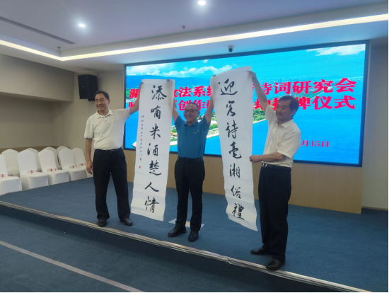 “迎客詩(shī)毫湘俗禮,添嘀米酒楚人情”。詩(shī)詞分會(huì)主席陳嶺為嘀嘀酒店盛情賦詩(shī)一首,并由研究會(huì)副會(huì)長(zhǎng)劉慶富和書法分會(huì)副主席吳若順寫成書法作品,現(xiàn)場(chǎng)贈(zèng)送給嘀嘀酒店,將活動(dòng)氣氛推向高潮。