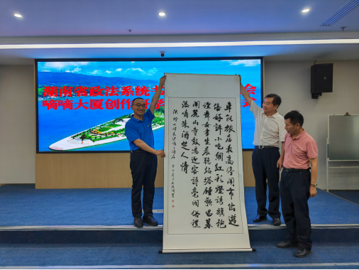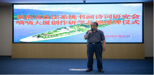 “全面建設(shè)社會(huì)主義現(xiàn)代化國(guó)家,必須堅(jiān)持中國(guó)特色社會(huì)主義文化發(fā)展道路,增強(qiáng)文化自信。文化是民族之根。應(yīng)該讀好‘兩本書’,一本是有字的經(jīng)典之書,一本是無(wú)字的實(shí)踐之書。嘀嘀大廈緊鄰長(zhǎng)沙火車站,來往交通方便,文化氣息濃厚,在長(zhǎng)沙法官文聯(lián)學(xué)雷鋒書畫工作站的基礎(chǔ)上,進(jìn)一步成立政法文化創(chuàng)作研學(xué)基地,開展各種有意義的詩(shī)詞書畫文藝活動(dòng),可以助力實(shí)現(xiàn)‘以文興商、以商促文’的雙贏目的,為建設(shè)社會(huì)主義文化強(qiáng)國(guó)貢獻(xiàn)出我們應(yīng)有的心智和力量。這樣的政法文化創(chuàng)作研學(xué)基地多多益善。”彭對(duì)喜對(duì)活動(dòng)給予高度肯定。