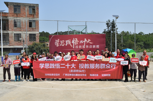 4月25日-26日,深交所聯合海通證券、廣西證券期貨基金業協會、證券時報舉辦的“學思踐悟二十大 投教服務啟新程”投資者服務專項活動走進廣西欽州市浦北縣。在深入開展學習新時代中國特色社會主義思想主題教育之際,以多載體、多角度、多形式走進鄉村小學、村間打谷場、田間地頭、紅色教育基地,以群眾喜聞樂見的方式展開面對面宣傳交流,推動投資者教育服務進一步走進鄉村基層,助力鄉村振興。