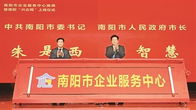 南陽市委書記朱是西(右)、市長王智慧(左)為南陽市企業服務中心揭牌