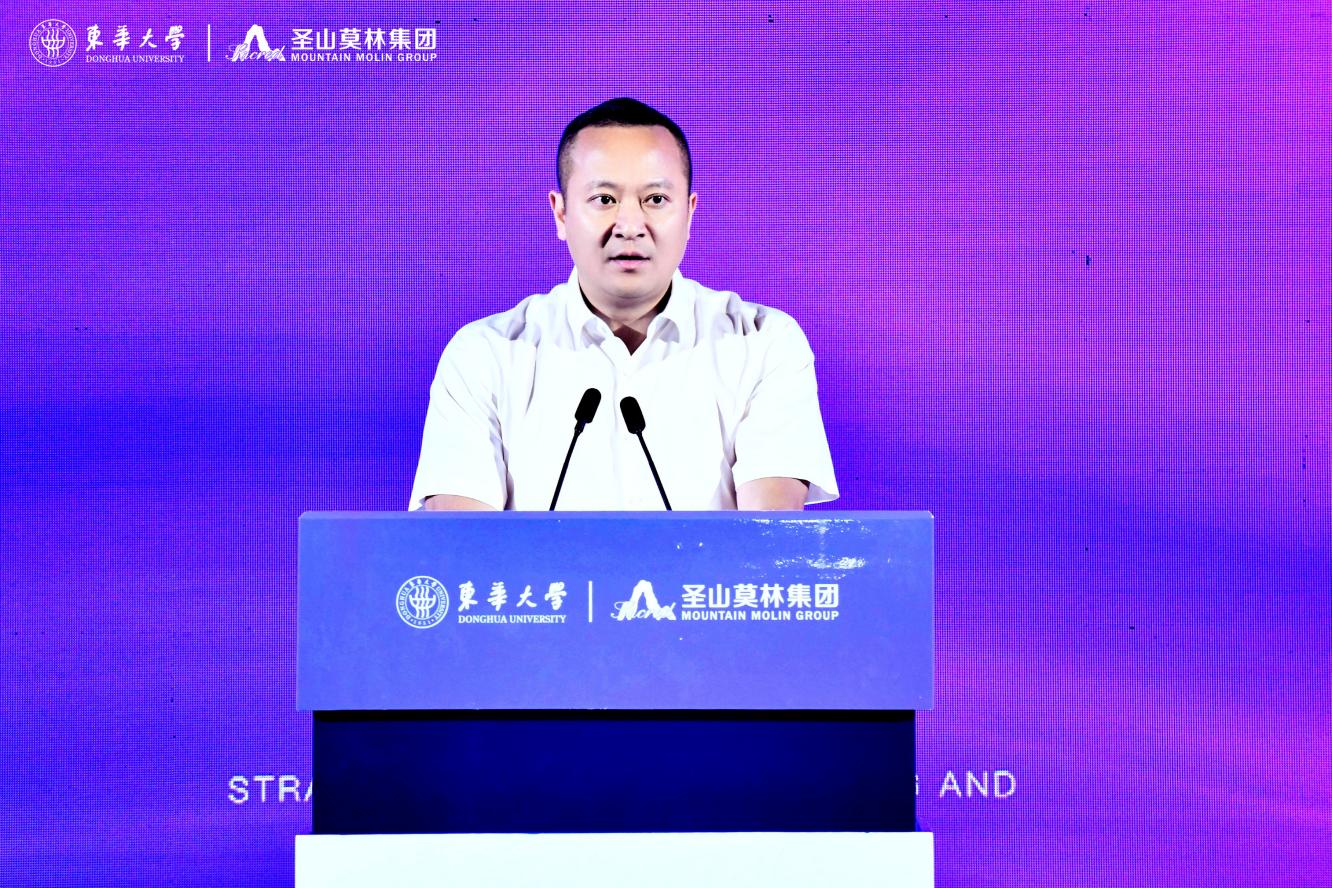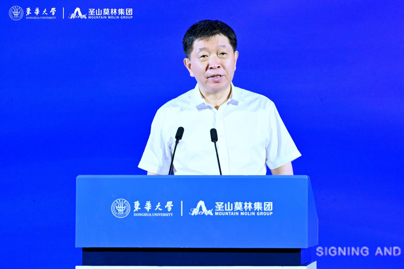 中國(guó)工程院院士、東華大學(xué)校長(zhǎng)俞建勇出席儀式并致辭,他表示,東華大學(xué)是新中國(guó)成立的第一所紡織高等學(xué)府,也是教育部直屬、國(guó)家“211 工程”、國(guó)家“雙一流”建設(shè)高校。五糧液集團(tuán)是“全球規(guī)模最大、生態(tài)環(huán)境最佳”和“最有價(jià)值品牌”特大型現(xiàn)代企業(yè),圣山莫林集團(tuán)作為五糧液集團(tuán)多元板塊子集團(tuán),深耕紡織服裝行業(yè),積極服務(wù)地方經(jīng)濟(jì)發(fā)展。此次東華大學(xué)與圣山莫林集團(tuán)合作設(shè)立聯(lián)合創(chuàng)新中心,是貫徹落實(shí)黨的二十大對(duì)教育、科技、人才工作統(tǒng)籌部署的重要舉措,是雙方深化科教融合、產(chǎn)教融合,搶抓機(jī)遇、共謀發(fā)展的新思路與新探索,是雙方“情相融”“力相聚”,互惠共贏、共謀發(fā)展的新起點(diǎn)。希望雙方以共建“東華大學(xué)-圣山莫林集團(tuán)聯(lián)合創(chuàng)新中心”為契機(jī),充分發(fā)揮東華大學(xué)在紡織、材料等前沿領(lǐng)域的研發(fā)和創(chuàng)新優(yōu)勢(shì)以及圣山莫林集團(tuán)的市場(chǎng)和資金優(yōu)勢(shì),在時(shí)尚設(shè)計(jì)、面料開(kāi)發(fā)、服裝研發(fā)、成果轉(zhuǎn)化以及畢業(yè)生就業(yè)等方面開(kāi)展更高層次的交流與合作,合力譜寫(xiě)校企合作、產(chǎn)教融合的新篇章。